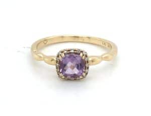 14KY Cushion Cut Amethyst Ring With Diamond Halo