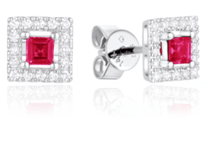 14KW Square Ruby Halo Studs