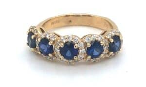 14KW Blue Topaz, Sapphire and Diamond Hexagonal Ring