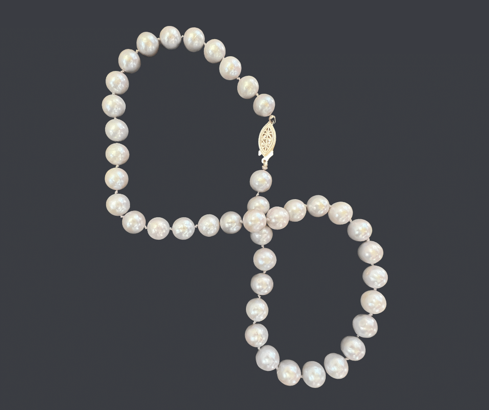 14KW 10-11MM Silver Freshwater Pearl Strand Necklace