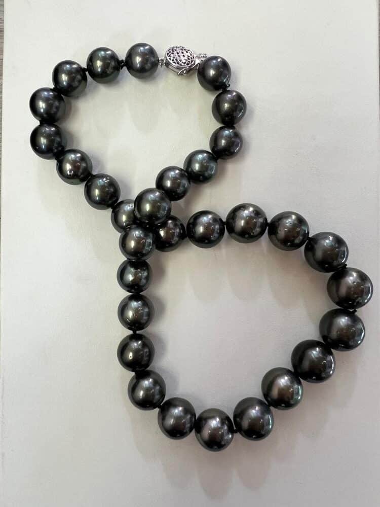 14K White Gold 12-15MM Tahitian Pearl Strand Necklace