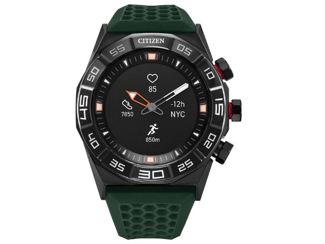 Introducing a genius timepiece like you’ve never seen before – the new CZ Smart hybrid has all the style of iconic Citizen design combined with the best-tech functions of a smartwatch. The impressive 15-day battery keeps up with your busy lifestyle in a distinctive design that stands out. This new CZ Smart hybrid watch features a black ion-plated stainless steel sport bezel and 44mm case with functioning dials on the black and white display with pops of orange on the pushers and luminous analog hands. The green silicone integrated strap blends with the overall design and fits perfectly on your wrist. Utilize the Citizen Connected app to manage your notifications, change your dials and see your fitness stats. Stay on track with the convenience of information at a glance on your hybrid smartwatch display. You can choose the dial that fits your mood or style and customize the information on display to meet your needs including, steps, weather, heart rate, and more.